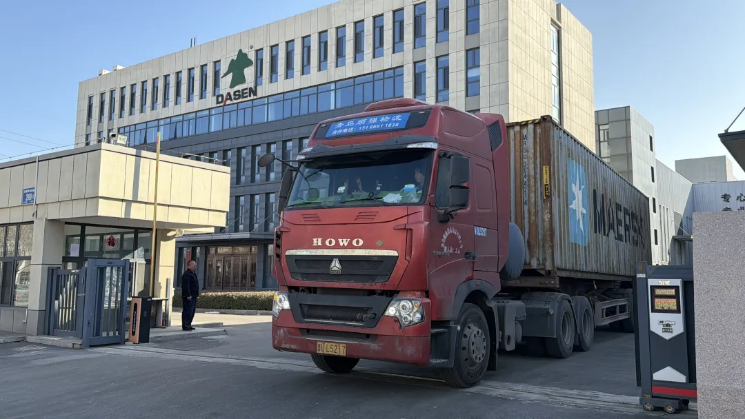 十輛滿載著大森速凍設(shè)備的集裝箱半掛車陸續(xù)裝箱駛離廠區(qū),向著青島港出發(fā),開(kāi)啟跨國(guó)履約之旅。